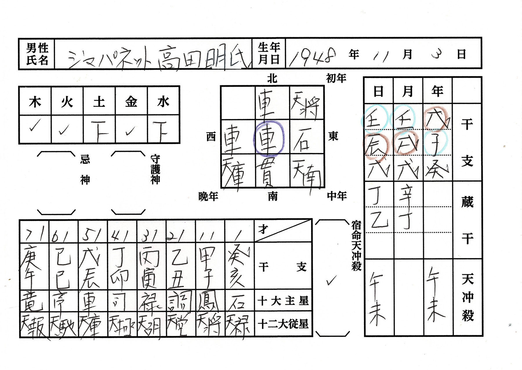 ジャパネットたかたの高田明氏の鑑定版です。命式の特徴としては、陰占に水性と土性が綺麗に3:3になる二象格です。とてもバランスのよい命式。だから基本バランスの取… -