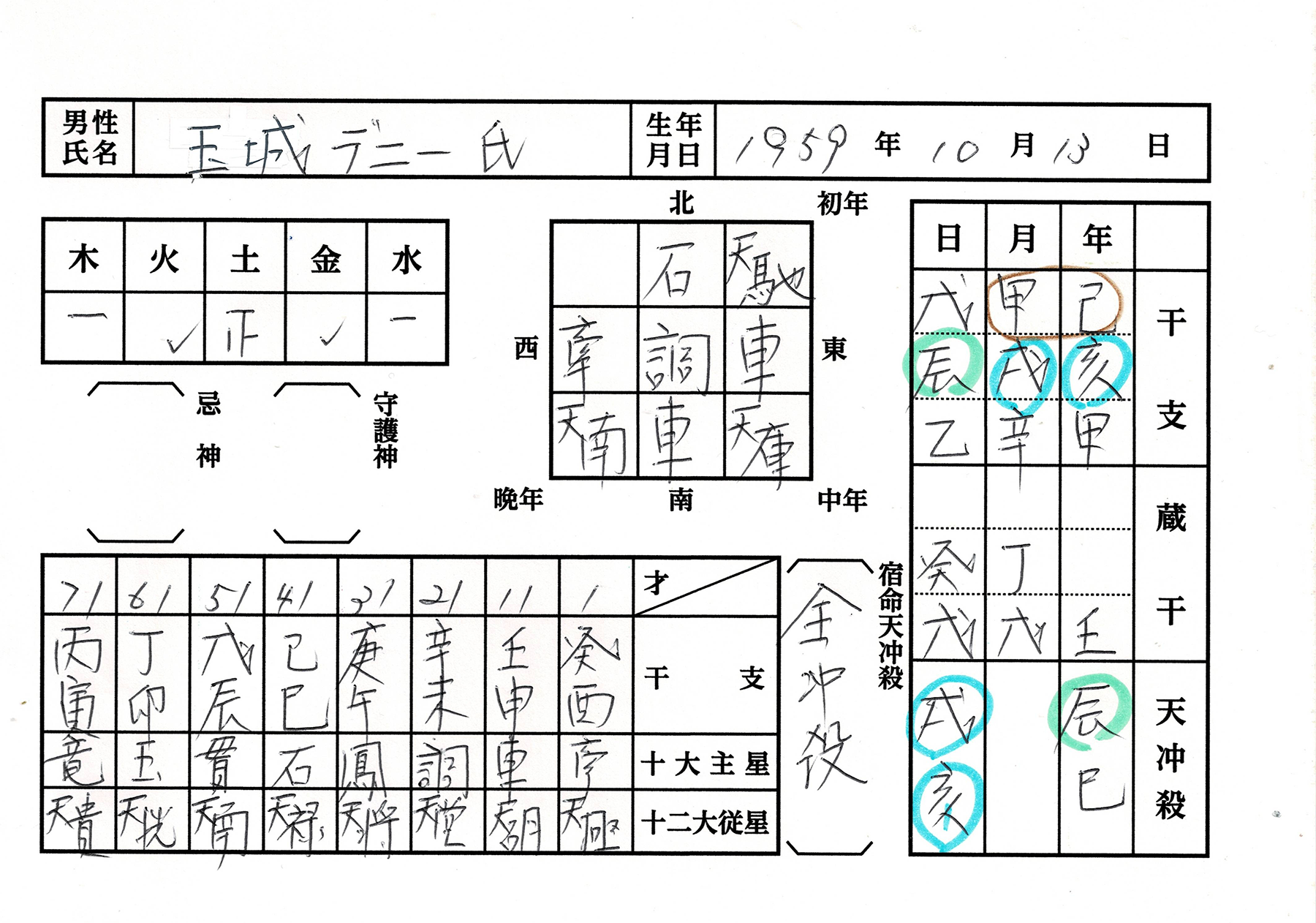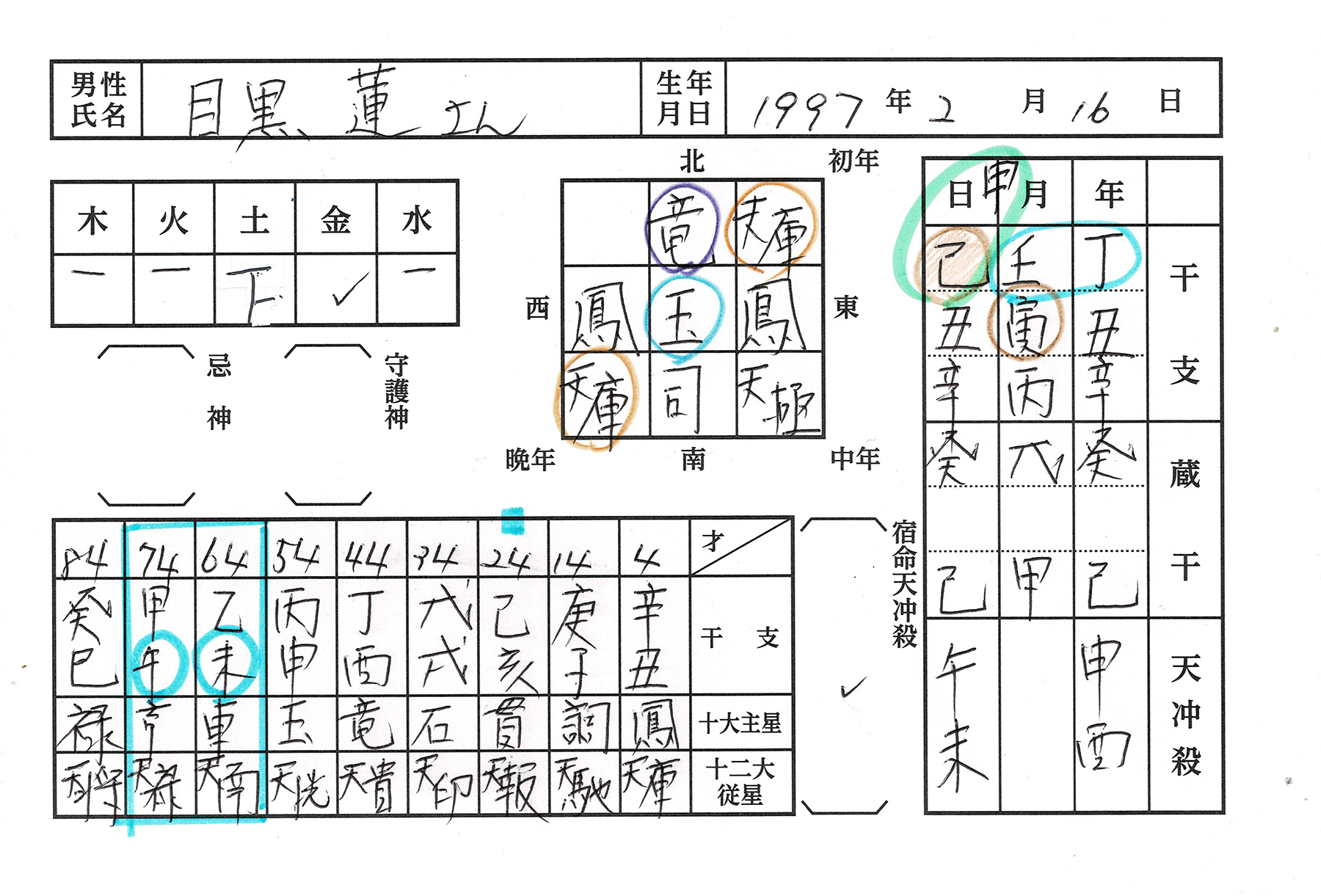 鑑定版の南北に同じ星が出ると相続の運なら、東西に出るのが二度の結婚運になります。A子さんの碁盤の真ん中はA子さんの主星・凰閣星その左右に牽という字があるでし… -